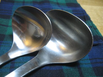 鍋物にちょうどいいですよ、という触れ込み。ル・クルーゼの18㎝片手鍋の鍋肌にぴったり沿います、いい具合です。22㎝のココットロンドも普通の丸いお玉よりもずっときれいにすくえます。大きいレードルはもちろん使いやすいですが、案外小回りの利くこちらの使用頻度が多くなりそうな予感です。