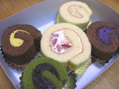 味が5種類のロールケーキです 中にはマンゴーのクリームが入った物も。