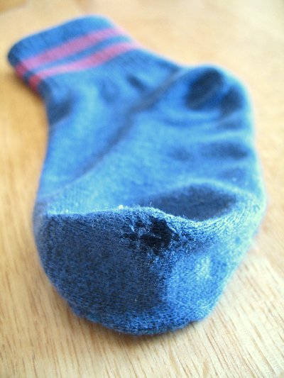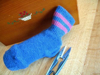 「お母さん、このソックス投げないで(=捨てないで:北海道弁)ね。針でチクチクしてね。」とと言いました。どこで聞いてきたのでしょうか?。「そうだね。」と私もソーイングボックスを出して、チクチク。