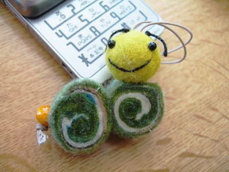姉から「遅いけど」と誕生日プレゼントにもらったのは、なんとかわいらしいいもむしのストラップ。作者は「おおいえのりこさん」というフィンランドの民族楽器カンテレの奏者です。