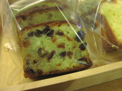 このパウンドケーキは復帰前にご挨拶として焼いたもの。フルーツのラム酒漬けをたっぷりと使ったタイプとレモン味のタイプです。1枚ずつセットにして配りました。