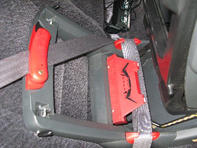 車のシートにがっちり固定されて動きません