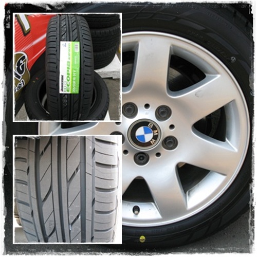 選んだのはブリヂストンの新製品 エコピアです。そう言えばガソリンスタンドののぼりにもエコピアの文字がはためいていました。エコな商品なのでしょうか?