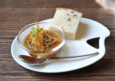 まずは深みのあるオニオンスープにノックアウト