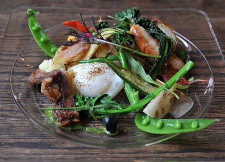 真ん中に落とした温泉卵をからめて、いただくとまた違った味に
