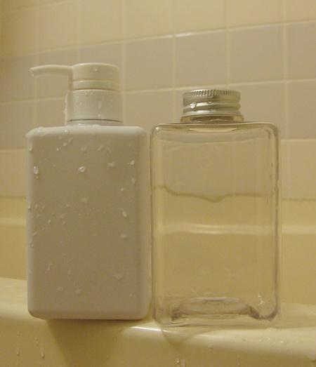 少し前に買ったMUJIの容器なので大きさははっきり覚えていませんが、確か400mlか600mlだったと思います。この2種類の大きさではポンプは兼用です。なければないで良いものではありますが、あれば便利なモノです。それが、モノが増える原因なんですけれど・・・。自戒して、先週の連休に30lのゴミ袋いっぱいに洋服を投げました(「投げる」=北海道弁「捨てる」)。捨ててスッキリする関連のプロジェクトに参加しようかしら?