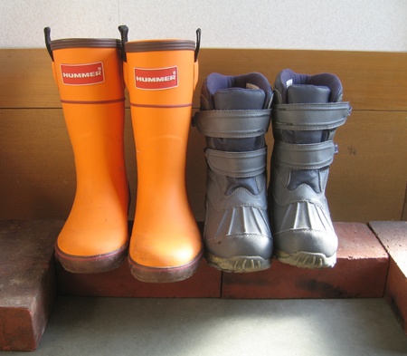 雨が多かった今年、こんなモノを玄関におくだけで、たたきの上がひどく濡れずに済みました。我が家のたたきは一度濡れるとじめじめとして、乾きが悪いのです。極寒の季節になると、濡れたたたきが凍って滑るというおまけも付きます。ドアが凍るんですから、不思議はないですよね~。