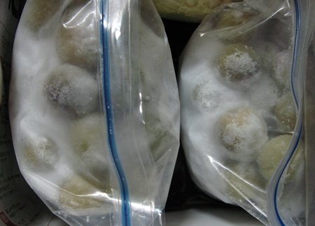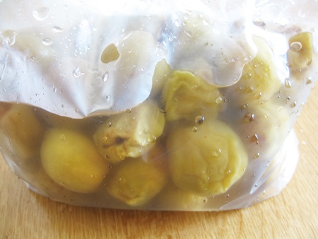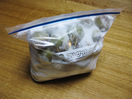 ということで、梅シロップに使う保存瓶がない我が家では「ジップロックでお味噌を作る」にヒントを得て(味噌樽は結局購入しているのですが・・・)、今回は頂いた梅を使ってジップロックで梅シロップを作ってみることにしました。まずは梅の下準備をして、冷蔵庫で冷凍します。冷凍すると早く梅シロップができます。