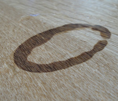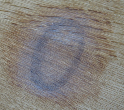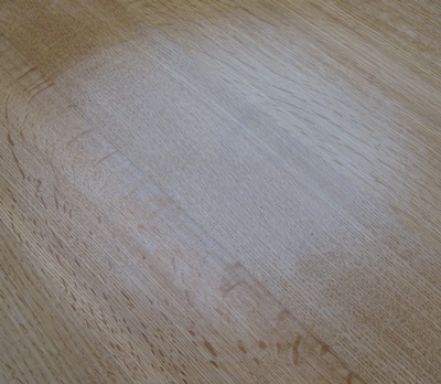 朝起きて夫が「たいへ~ん!」と騒いでいます。何かと思ったら、手作り洗剤(清水とリンゴ酢洗剤とエッセンシャルオイル)のスプレーボトルがダイニングテーブルの上に置いてあって、液体がもれていたようです。よって、こんなはっきりした輪染みに・・・。
