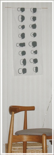 最近、手ぬぐいが気になっています。ティートレイに敷いたり、ウッドボウルのホコリよけとして掛けたりとオーソドックスな使い方しかしていませんが。でも、今日は思い立って手抜きの極地と言われそうなほどのタペストリー風を作成。