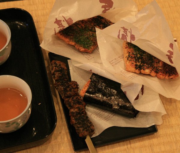 香ばしい香りにつられて早速注文です。「お店の中にお茶もありますから、休んでいってください」の言葉に甘えて、しばしの休憩。