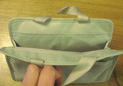 また取っ手が付いているので取り出しやすいです。他のバッグに入れ替えるのもあっという間です。収納ポケットが多いので色々入れられるのでしょうが、まだ使いこなせていない私。でもハンカチとティッシュの定位置が欲しかったので、このお値段1260円で手に入ったのは満足です。