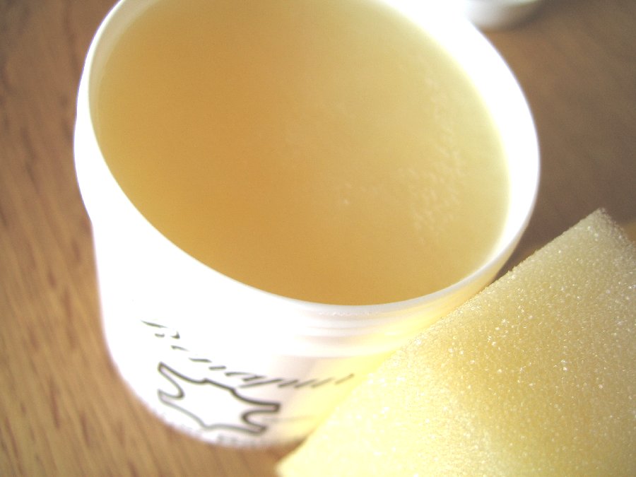 もういい加減油を塗り込まないといけないなあと思っていたリクライニングチェア。ちょうど革製品をお手入れするクリームがお安くなっていたので買ってみました。