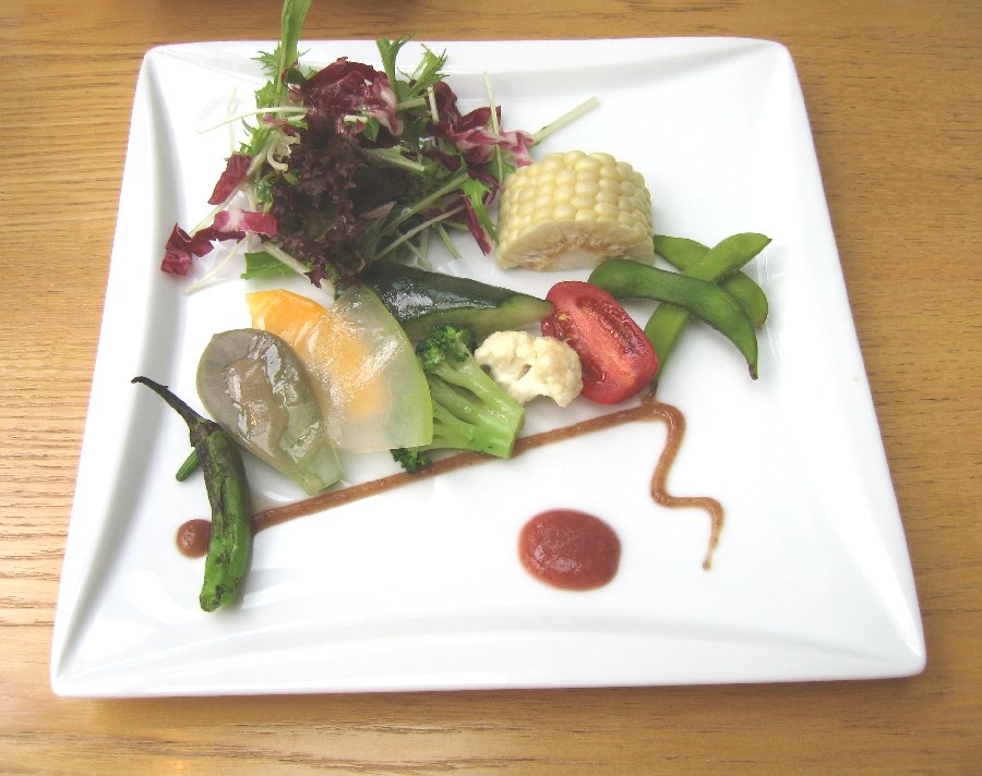 テラスがあって、町のど真ん中にあるとは思えません。パルコの看板などが見える景色は町中ですが・・・。お天気だと本当に気持ちよく頂けます。ランチタイムの一番混む時間に予約を取っていきましたが、空席はありませんでした。それだけにお店の人も本当に忙しく、人によってはメニューの説明もお皿の下げ方も雑になってしまっています。久しぶりのゆっくりランチなのでもっと堪能したかったです。