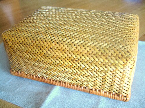 でも、お弁当箱の衣替えをしようと朝思い立ち、引っ越しをしたまま開かずの段ボールになっていた箱を開けました。籐のお弁当箱がお目見えです。