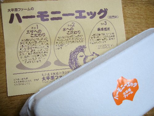 今回のプリンに使った卵は大平原ファームのハーモニーエッグです。実はこれ、先日の清水やきもの市の抽選で当たった賞品です。
