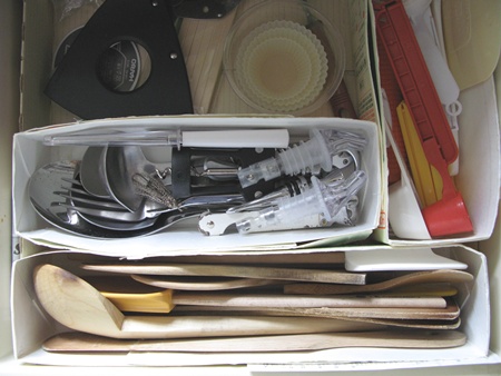 どうせ引っ越しするときにお掃除するから・・・と目をつぶっていた場所は数ありますが、台所の引き出しも気になっていたところです。気持ちを切り替えて、気持ちよく生活するために整理&お掃除をすることにしました。