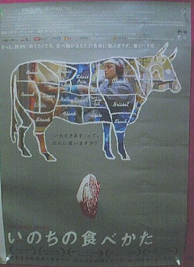 話題の映画ではありません。食に関心がなければ来ないはずの映画でしたが、日曜のこじんまりした映画館は6割強のお客さんの入りでした。正直、このお客さんの入りにホッとした私でした。だって、こんなことが行われている事を知られずに加工されていく牛や鶏・豚にとても申し訳ないです。