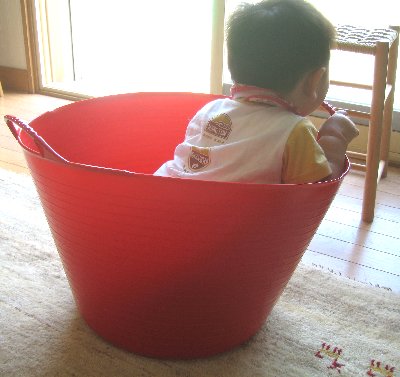 暑い日にプールを出さなくても、コレにお水をためれば遊べます。普段は資源ゴミでも入れておこうかな。車の中に荷物整理として置いておくのもいいし、もしキャンプ好きなら、荷物をどんどん入れて持ち運ぶのもいいでしょうね。編んだカゴと違ってざぶざぶ洗えるので内側が汚れても気にせずに使えます。
