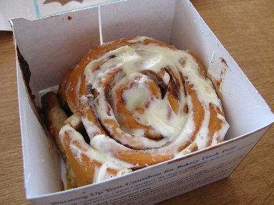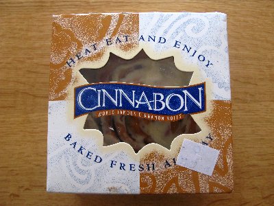 夫が帰りのシカゴ・オヘア空港からお土産にと買ってきてくれたのはシナボンでした。ハワイのカハラモールで話のタネにと食べたシナボンは激甘。その記憶を取り戻しました。