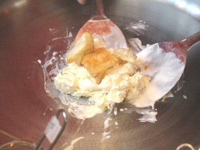果物も固くなって切りにくそうでした。うまく混ぜるために冷たいプレートの上で作業をするのかなあ?果物だとあまり恩恵にあずかれないような。今度は果物ではなくソース系に挑戦しましょう。
