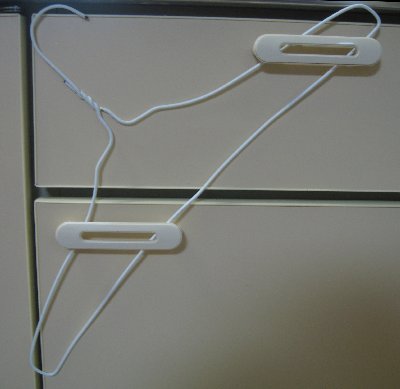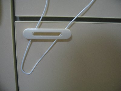 重要なのはお客様がいらっしゃる時には忘れずに取ること。全く見栄えはよくありません。また、万が一のために針金のフックを丸くするなどの安全対策を講じた方が良さそうです。