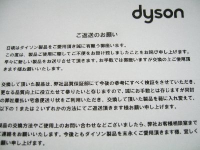 1年前にヘッドのローラーがおかしくなって、やはりヘッドが送られてきましたがその時には返送の必要はありませんでした。日本での掃除機の使われ方を研究して改良しようというのでしょうか?