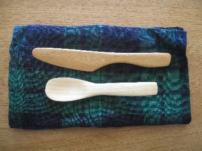 はじめのスプーンは家にあった何かの木です(笑)。バターナイフは5歳児が生まれた時5年前「5月人形