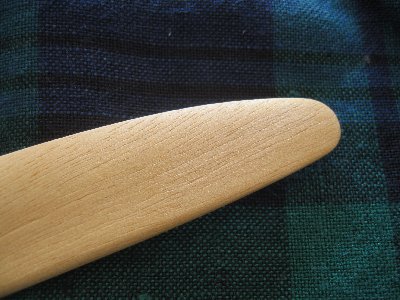はじめは野暮ったい厚みでしたが、薄くしたことによって使いやすくなったと思います。今度作ってもらうバターナイフは持ち手の部分がカーヴしていて北欧っぽく作ってもらえるようにリクエストすることにします。塗ってあるオイルは口に入れても安全(ゴクゴク飲み込むことは論外)ドイツ製オスモです。