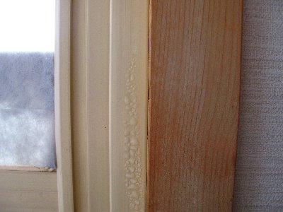 がひどい。毎日、朝起きて夫の朝一番の仕事はベランダなどの結露している窓の水滴をワイパーで取ることです。窓は気をつけていても窓のサッシの結露まで気に留めていなかった私。気づいたら・・・。