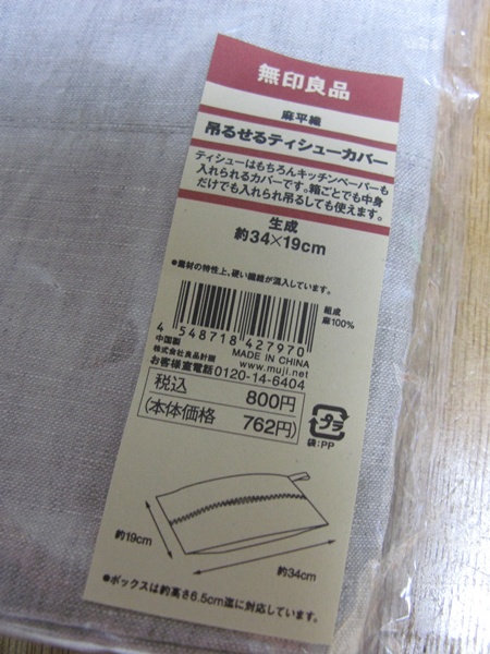 出張でステラプレイスをぶらぶらしてたら、無印のお店を発見!。年末にできたのですね。もちろん吊せて、リネンでというこのティッシュカバーをゲットです。