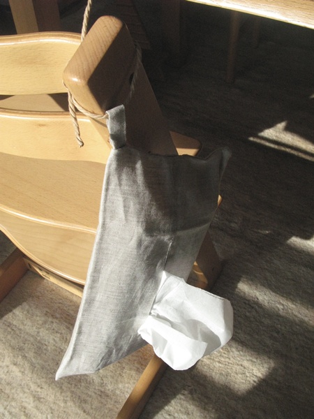 家の中で使うときに限ってティッシュペーパーが見つからないっていうこと結構ありませんか?物が定位置にないとあっちへいったり、こっちへいったりでイライラ。それを解消するべくトリップトラップの背に固定するティッシュカバーを作ったこともありました。それも今では汚れてしまってサヨナラしたのですが、2代目をということで探していました。