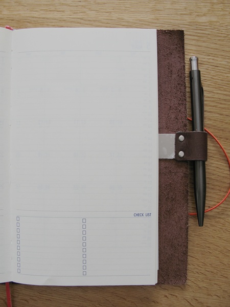 ほとんどトラベラーズの普通サイズと変わりません。これなら本物を買った方がよかったかも、と思いましたが、好きなスケジュール手帳を入れられたしっくり感が広がります。ミドリカンパニーの手帳に合わせるには既製品では若干寸足らずなのです。
