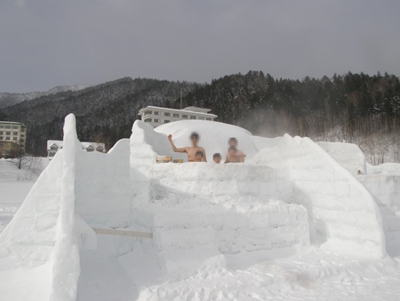 男性陣は目的の氷上露天風呂でご満悦