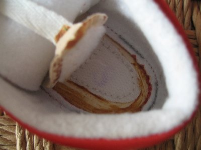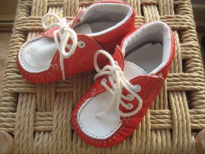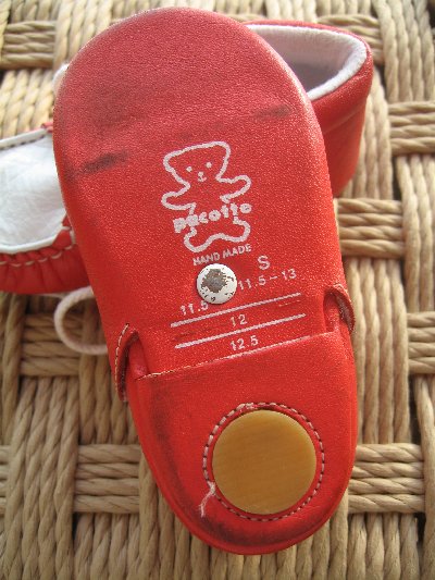 1歳児の体重も10kgを超し、ずっと抱っこも辛くなってきました。まだ自由に外は歩けないけれども、ちょっと下に降ろしておきたい時って結構あるもの。ちょうど年末の靴箱掃除をしていたら、ちょうどいい皮のファーストシューズが見つかりました。姉の子供のお下がりです。