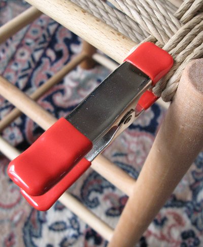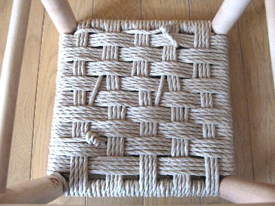 でペーパーコードを購入することから始まりました。家具製作・鯛工房から650mのデンマーク製のペーパーコードを購入です。それから編み方を入手してから、ペーパーコード張り替えスタート。