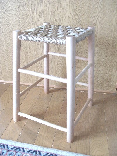 なのかも知れません。(作業していない私が)完成したのに気分を良くし、今度はペーパーコードのスツールキットを木工房グルッペで購入。ちょうど鞄を置くちょこっと台が欲しかったのです。そして、人数が増えても補助イスとして使え、高さもYチェアとほとんど同じ高さの43㎝を選びました。スツール作製2時間、ペーパーコード張り2時間の目安です。なんと製作途中でリタイヤしても引き取ってくれたり、パーツも単品で購入できます。