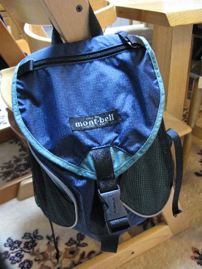 オークションで見たりもしたのですが、時期的にもいいのが見つからなくて、札幌ファクトリーのモンベルを覗いたらちょうど見つけました。さすがアウトドアメーカーで、丈夫そうな数種類の子供用デイパックがありました。