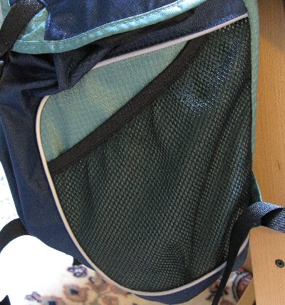またサイドのメッシュポケットのパイピングに蛍光テープが使われていて、夕方からこのラインが光ります。かなり存在をアピールするので、安全対策もなされていますよ。