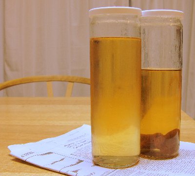 梅シロップを入れたストレートは冷蔵庫のボトルスペースに余裕で入ります。梅シロップの場合は口に注ぎ口が付いていれば言うことはないのですが、それは我慢我慢。チューリップシェイプは酵母が混ぜやすいです。おしりが少し太っているのが混ぜやすい形なのでしょうね。
