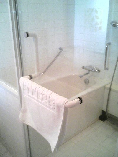 ミストシャワーが寝不足の朝には最高 ガウンもあります