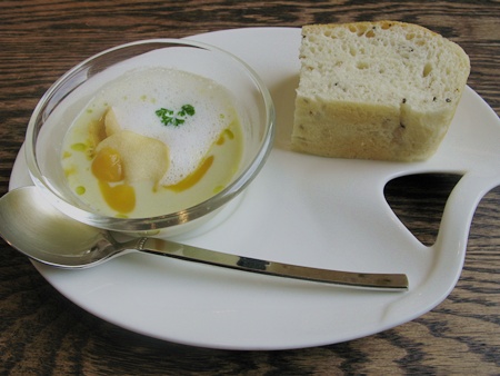 青大豆のポタージュ 黄色いのはカボチャ