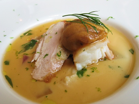 今回はコースの真ん中のランク「バローレコース」シェフのおまかせでお願いしました。味のすばらしさもさることながら、今回はサーヴしてくれる女性に感服。それは席に着いてから名前の確認もせずに、お食事がスタート。お食事が終わるまで一切聞かれませんでした。お会計の時に別な女性に聞いてみると、そう不思議でもない風で「覚えていたのでしょうね」とのことでした。「プロなんだねえ」と夫婦で感心しきりです。