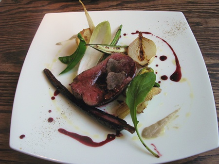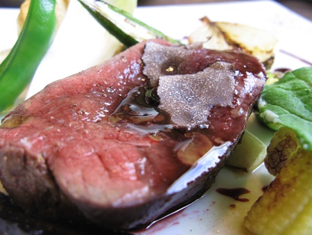 鹿肉ステーキです 上に乗っているのがトリフ