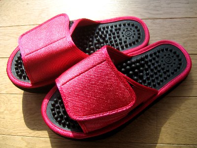 顔を洗うのに屈むと、太ももの裏も頑張っている感じが気持ちいい。でもあまり長い時間履き続けるのは禁物です。夫が体の調子が悪く病院に行った時、医師が「いくら健康スリッパだと言っても、一日中履いているとかえって体に良くない。」と言われたそうですから。