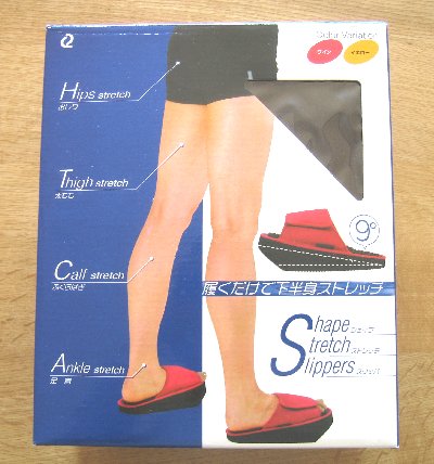 ゆるみきったこの体をどうにか少しでも締めるべく、できるだけ手間をかけず、何かと同時進行でできないか・・・という厳しい条件の中、やっと買ったのがシェイプストレッチスリッパ。