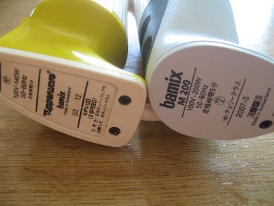 比べてみると、不思議なことに使用感を抜いても、プレゼントしてもらった方が断然新しく感じます。車もそういった感想をしばしば持つのですが、デザインって見ただけで新しさを感じさせるので、すごいですよね。大きさは古い方が小さいですが、だからといって重さが軽いと言うこともないです。何か雑誌の特集で「バーミックスは重くて、持っていると相当疲れる」と言うことが書かれていましたが、私はそう思いません。人並み以上の筋力を持ち合わせてもいないと思うのですが・・・バーミックスの筋力はWが多少違うのでパワーは新しい方があるみたいです。