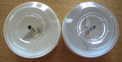 見づらいでしょうが、新旧のグラインダーは明らかに改良されています。まずフタの違い。新しい方はバーミックスの回転軸と4本のツメが入る所以外の穴はありません。よりバーミックス本体を汚れから守る様にできています。口径は同じですが、高さが違うため、古い物よりも新しい物の方が液体の許容量が多く、ソースやごまだれを作るのにグラインダーで混ぜることができます。古い物はゴマのペーストを作って、他の調味料と違う容器で混ぜ合わせなければなりませんでしたから。何より嬉しいのが、野菜のみじん切りをする時に分けてグラインダーにかけなくても良くなったこと。早く足がつくにんじんはみじん切りにして、ジップロックに入れて、冷凍させておきます。にんじんに限らず、水分が少ない大根などの根菜はこうするとすぐに使えます。離乳食にはとっても便利で、育児サイトにも紹介されていることが多いのも納得です。
