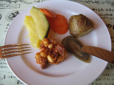 以前はコースを選んで食べるシステムでしたので、お互いの物を半分こして食べていました。コースによってはいいお値段するものもありました。でも今のスタイルは1400円です。大満足、大満足。また家で野菜になるべく手をかけずにおいしく頂くヒントにもなるます。今度は家族で来ることになるでしょうから、今回はリサーチで行ってきたよと夫に説明しなければ、です。