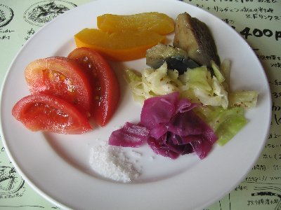 。中でも赤キャベツの酢漬けとトマトのモンゴルの塩仕立て(完熟トマトにお塩をつけて食べる)はおかわりしてしまいました。以前はコースを選んで食べるシステムでしたので、お互いの物を半分こして食べていました。コースによってはいいお値段するものもありました。でも今のスタイルは1400円です。大満足、大満足。また家で野菜になるべく手をかけずにおいしく頂くヒントにもなるます。今度は家族で来ることになるでしょうから、今回はリサーチで行ってきたよと夫に説明しなければ、です。